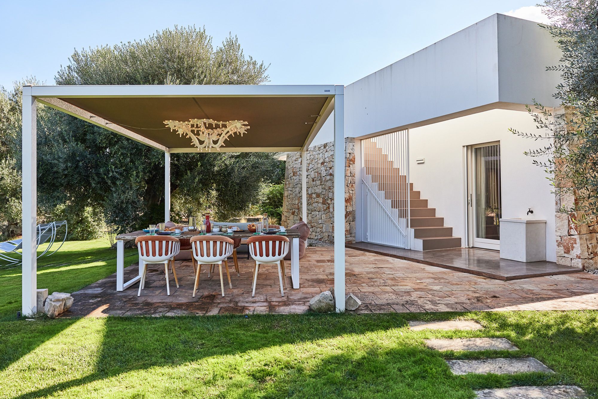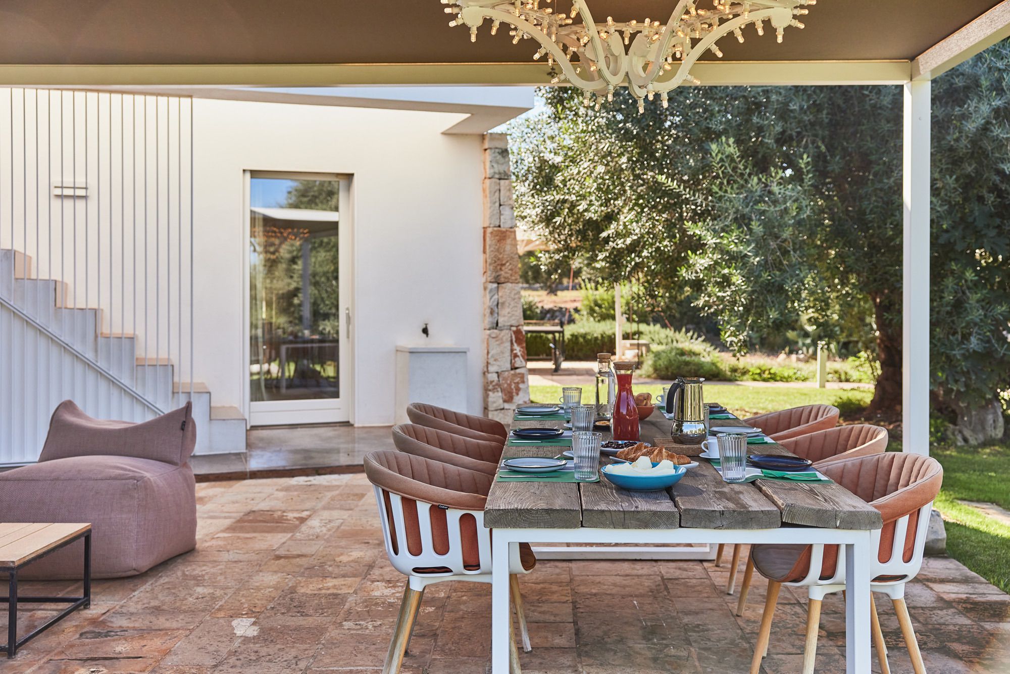 Terrarossa’s peaceful site among Puglia’s olive trees is perfect for exploring the Valle d’Itria’s urban areas and Adriatic beaches. It’s perfect for life outside, with plenty of terraces, lush gardens, and a stunning pool. The interiors have been beautifully created and spacious with lots of natural light.
