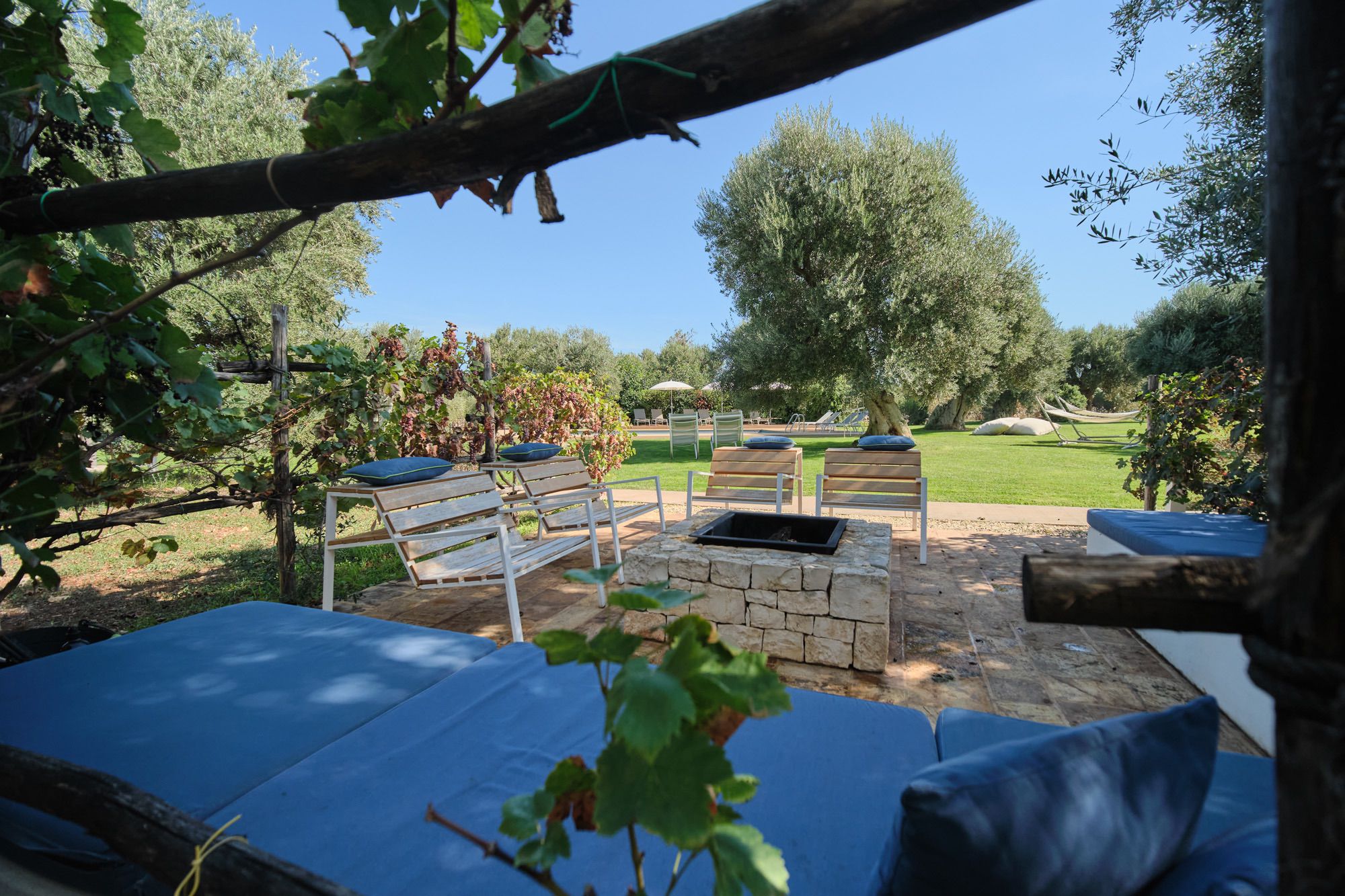 Each structure offers an outdoor eating and relaxing area, including a panoramic roof terrace on the night house and a fire pit by the pool for romantic evenings.