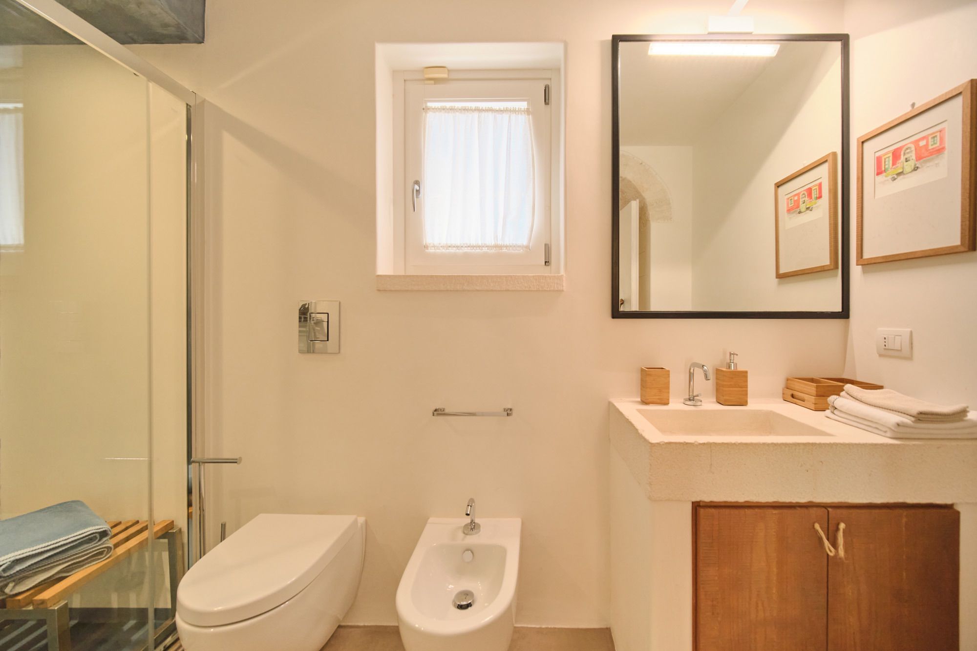 The night house, on the opposite side of the pool, has two double-twin bedrooms, each with a private bathroom, shower facilities, a smaller kitchen-diner, and a television area. A gorgeous suite with a bedroom, slight sitting space, and en-suite can be found in the renovated trullo, which is 20 metres distant.